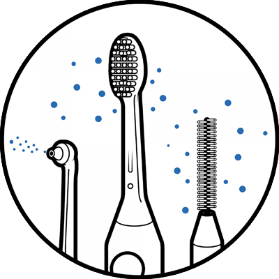 GBTでは、手用器具や手間を最小限に抑えることが期待できます。エアフローは、さまざまな歯科組織に対する侵襲性を抑えます:象牙質、セメント質、エナメル質、歯肉など。歯面への侵襲性を抑えつつ、患者さんの快適性を追求します。その結果、患者さんが天然歯やインプラントを長く維持することに寄与します。