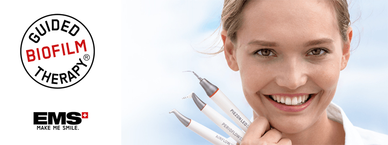 Guided Biofilm Therapy(誘導的バイオフィルム療法)とは、スイスのEMS社が開発した、科学的根拠に基づいた最先端の歯周病予防・治療法です。これまでのクリーニングとは異なり、単に歯石を取るのではなく、「バイオフィルム(細菌のかたまり)」を可視化し、効果的かつ安全にバイオフィルムを除去することに重点を置いています。