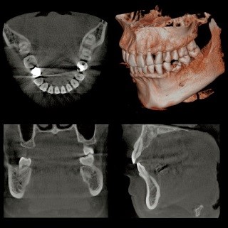 CT検査は立体的に歯槽骨の状態を診ることができるので、通常のレントゲンで顕著な骨吸収が診られた場合に撮影します。