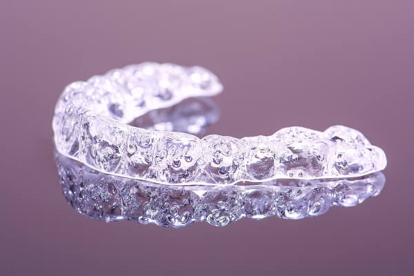 当クリニックで使用しているマウスピースは透明のアクリルでできていて、下顎の歯に装着します。